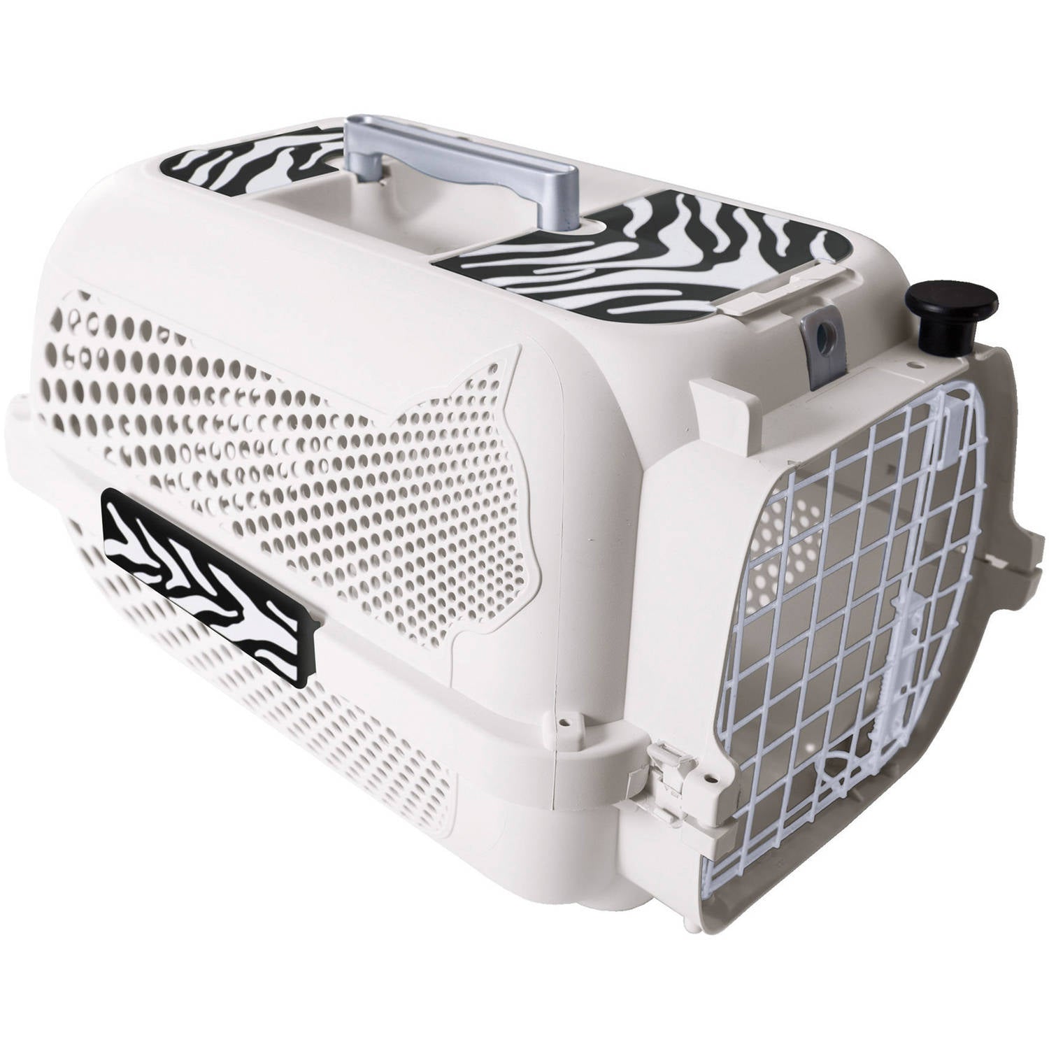 - 時尚設計,籠兩側透氣孔部份採用貓貓外形的設計, 頂蓋及鎖扣位印有黑白斑馬紋作點綴
