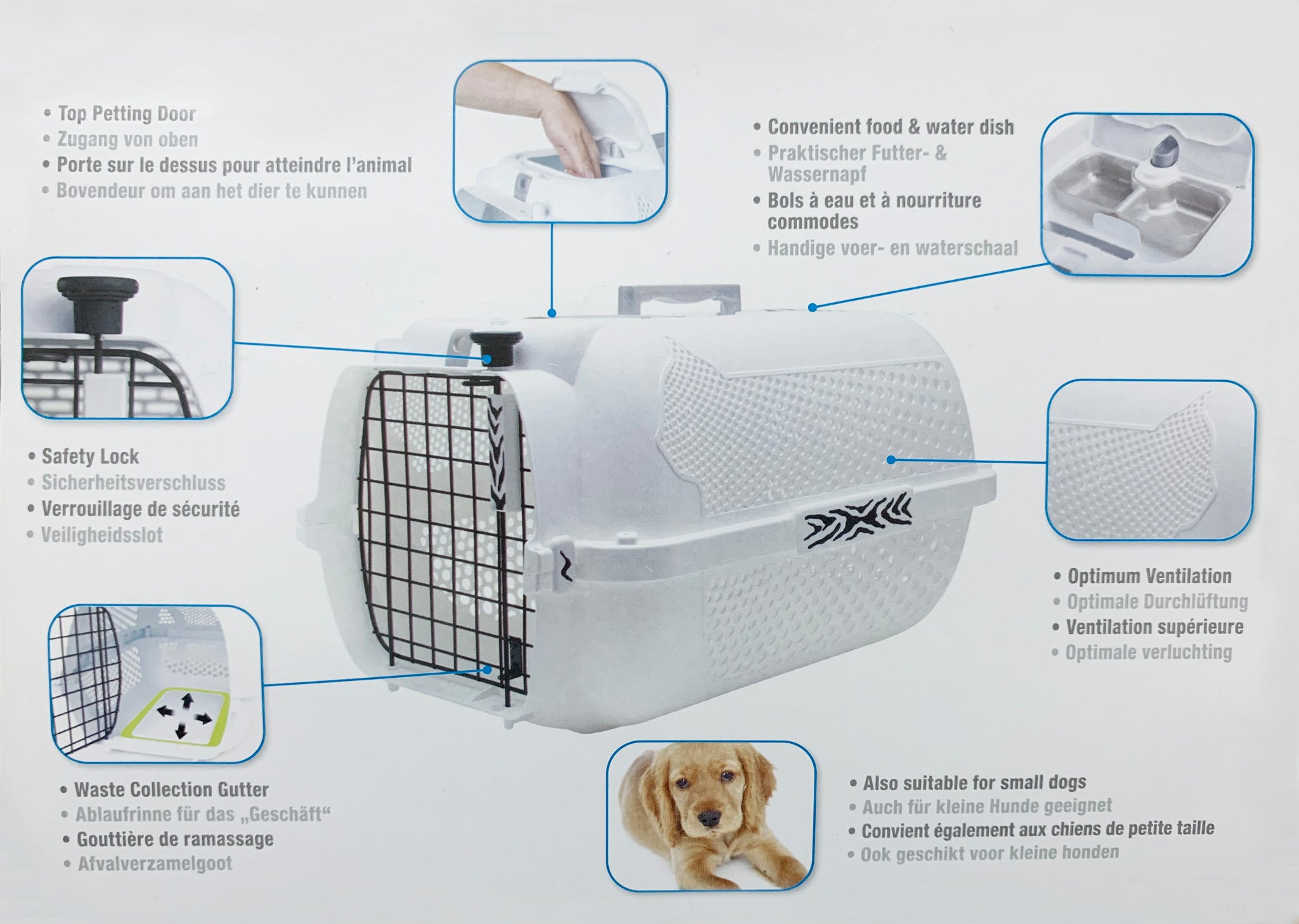 - 頂部帶有一個食物/水盤,方便餵食籠中的寵物。