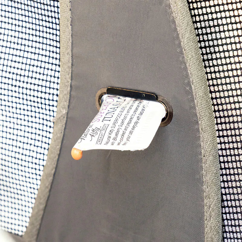 • 頂級貓背包採特殊雙層網窗設計,由高強化抗抓咬的PVC網和尼龍網組成,提供更好的可見度和互動性,網窗和蓋布都可以上捲收納