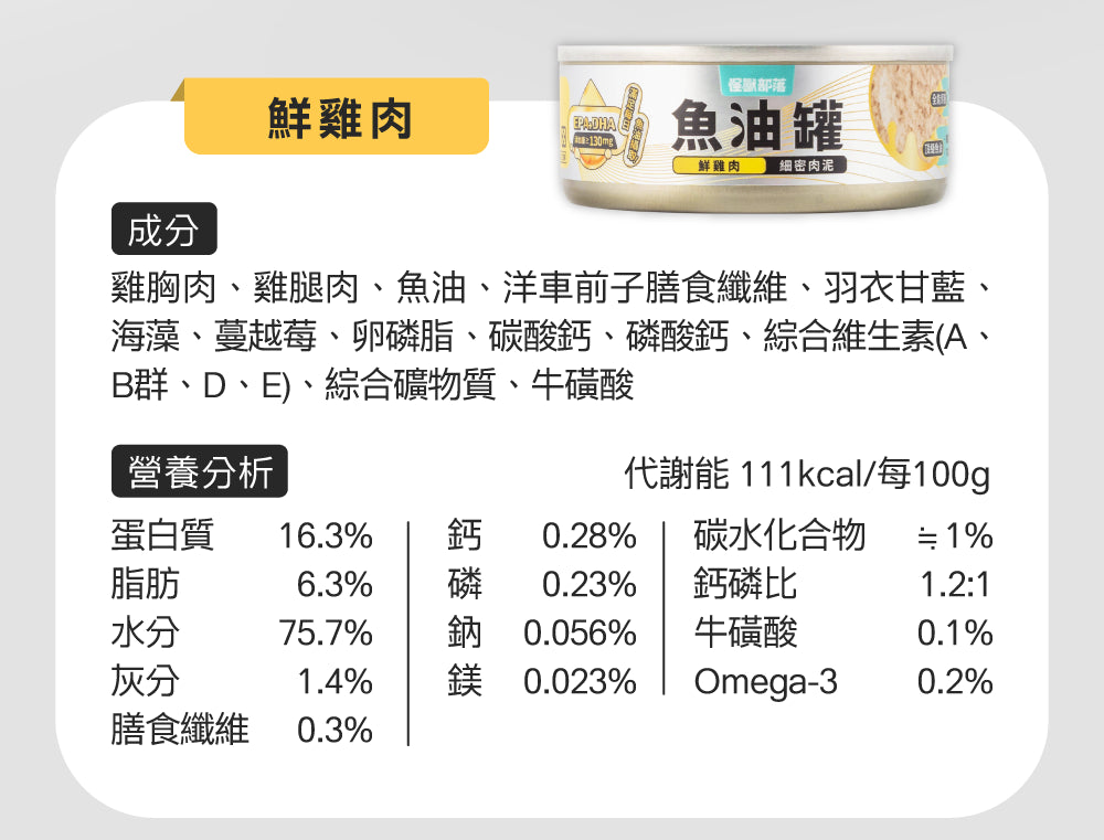 怪獸部落 - 貓用|德國頂級魚油主食罐-鮮雞+鯖魚 (細密肉泥) 82g