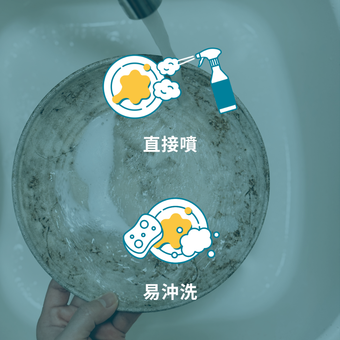 一噴分解污漬,輕鬆清潔海綿無法觸及的角落,去除油脂和蛋白質等食物污漬,一瓶搞定全家的餐具,讓洗碗變得簡單!