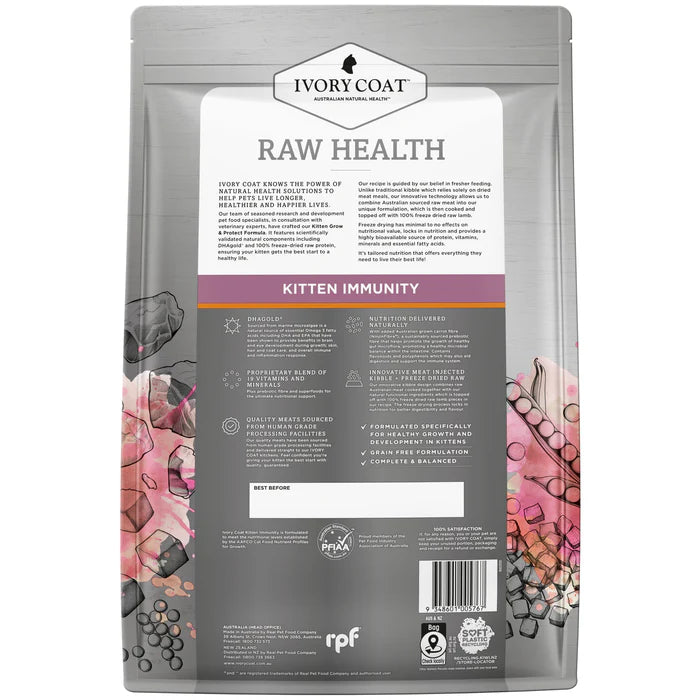 Ivory Coat Raw Health 免疫力增強幼貓糧 [無穀物雞肉乾糧+生羊肉凍乾] 4Kg