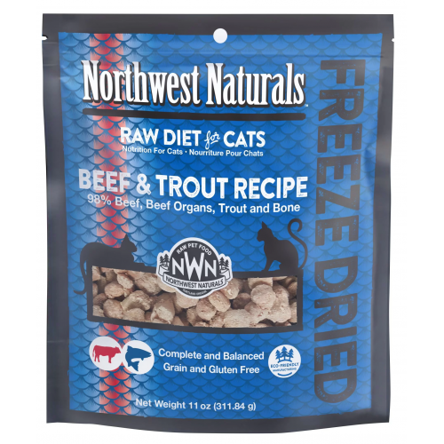Northwest Natural-凍乾小粒牛肉+鱒魚貓糧11Oz [Exp Date:2/9/2025]