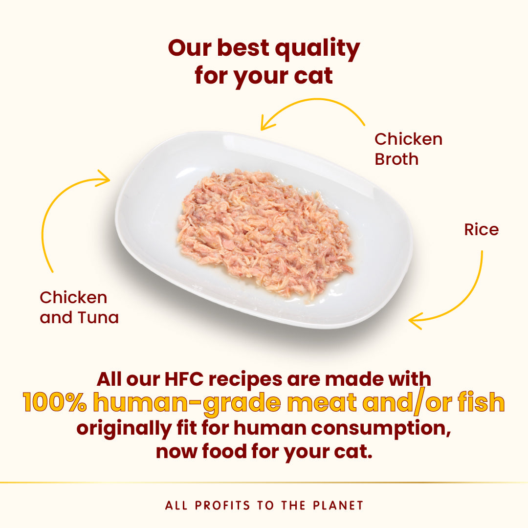 吞拿魚27%, 雞肉48%, 雞肉湯汁 24%, 米 1%