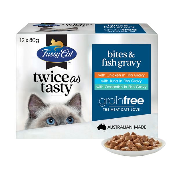 Fussy Cat wet food - Bites & Fish Gravy (12packs x 80g)
