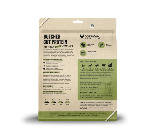 Vital Essentials Freeze Droed Raw Rabbit Entree Cat Food (Mini Patties)